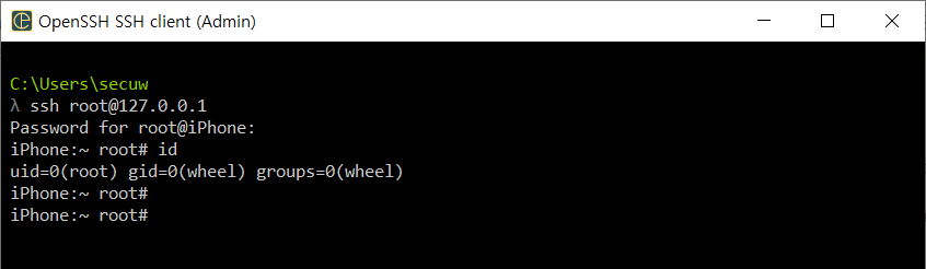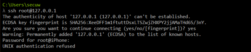 Palera1n 으로 탈옥 후에 SSH 로그인을 하려는데