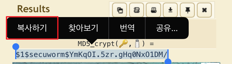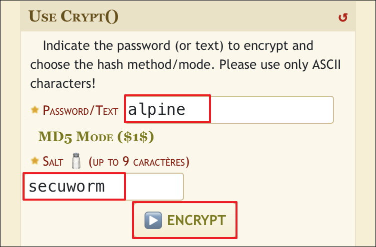 Encrypt 를 클릭하면 패스워드 해시값이 생성되는데