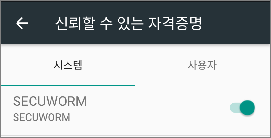 단말기 재부팅 후에 '설정>보안' 메뉴에서 인증서 삽입이 정상적으로 이루어졌는지 확인해봐야 한다.